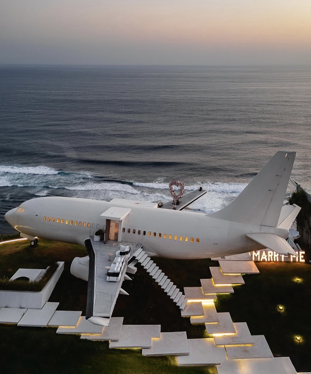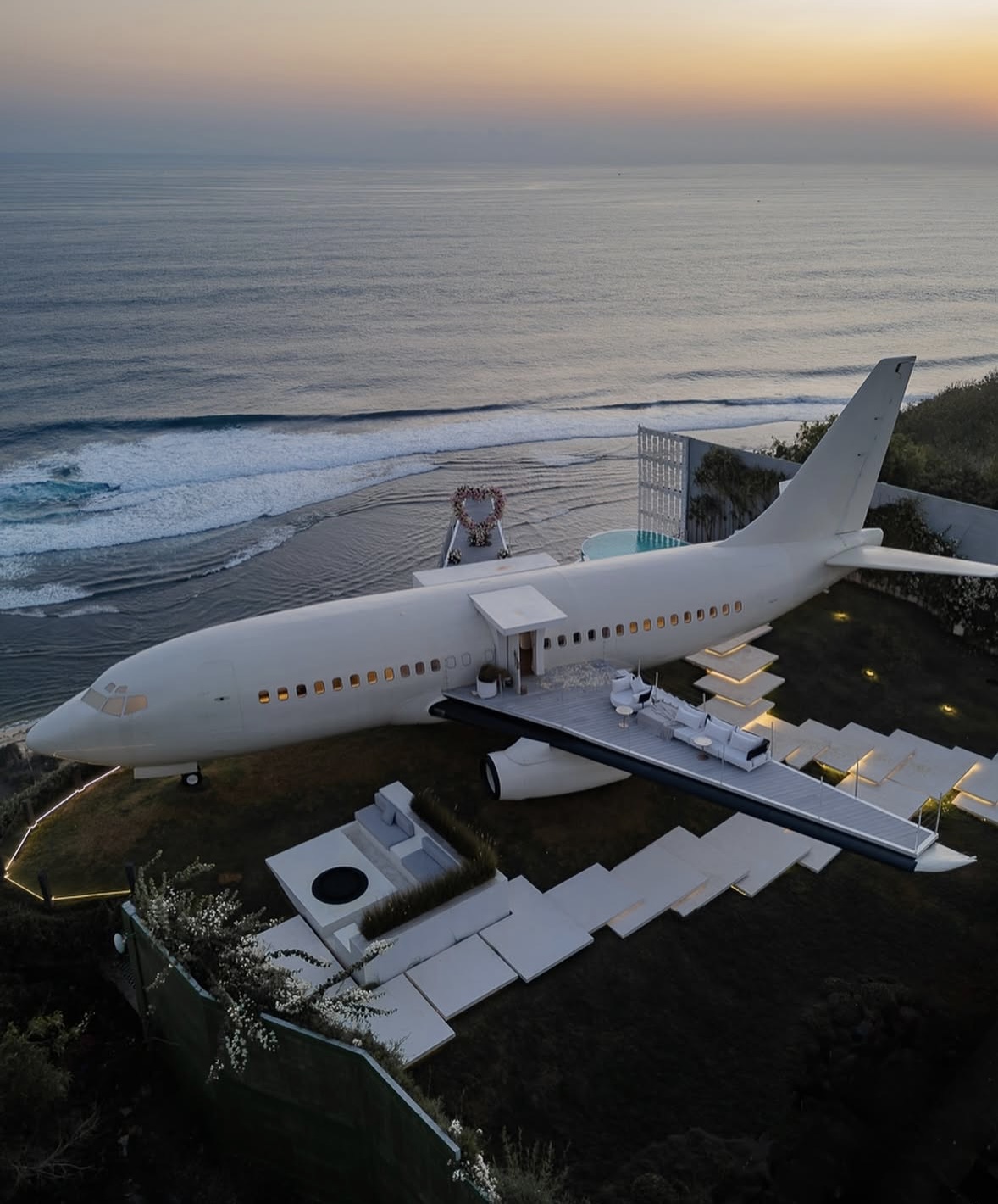 在巴厘岛海边悬崖上,一架波音737被改造成了奢华私人别墅。