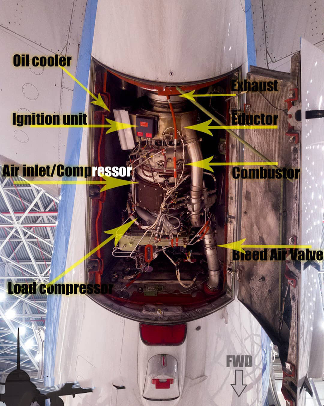 虽然它是一个“小不点”,但是它的作用却一点也不小。它在主发动机关闭时可以提供空调和电力供应,还能提供压缩空气和电源启动主发动机。